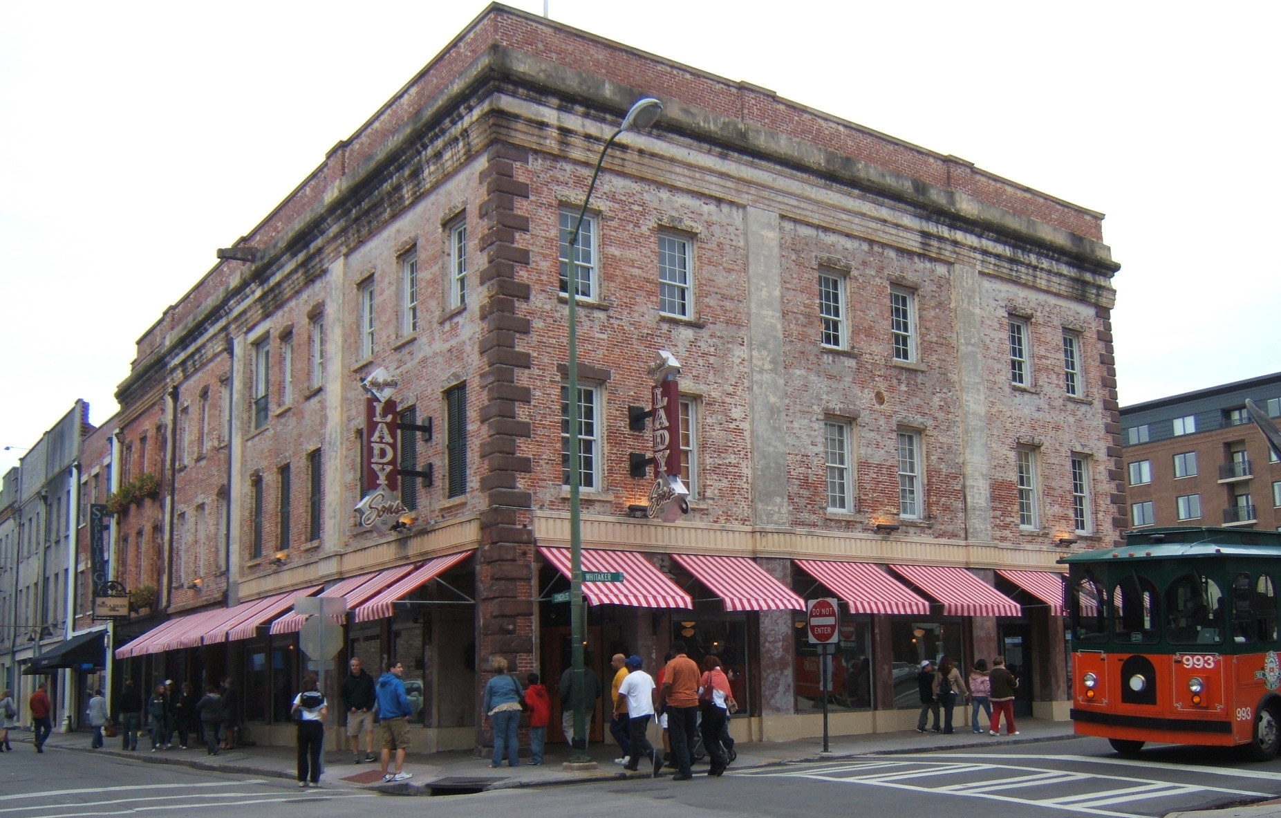 ジョージア州サバンナのダウンタウンににあるPaula Deen の人気レストラン、 The Lady & Sons 。一度に 300 人収容可能なスペースに、 全米中から多くの観光客をひきつける。 |