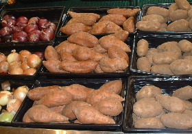 スィートポテトは ヤム(yam) とも呼ばれる。もともと北部の黄色いサツマイモと